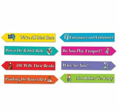 Alice in Wonderland Street Sign Cutouts Cardboard Assorted Designs – Printed Both Sides Pack of 4Â