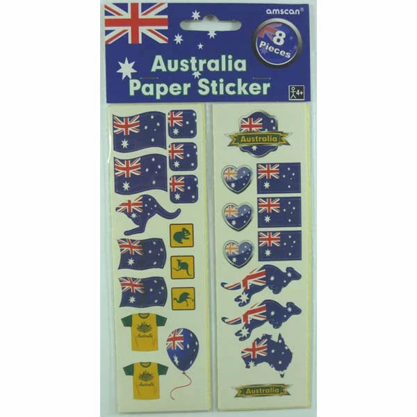 Stickers Australia Day Assorted Designs Plastic 8 x Strips – Total of 100 stickers (Average Size 3cm x 2cm) Each