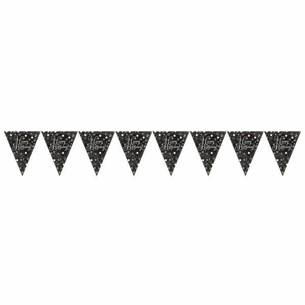 Happy Birthday Flag Banner Black Gold & Silver 4m