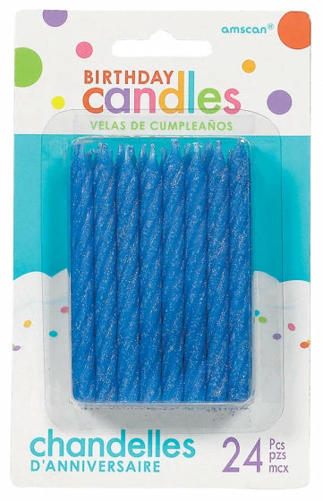Birthday Candles Large Glittered Spiral Blue Pk24