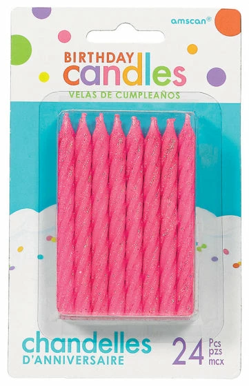 Birthday Candles Large Glittered Spiral Pink Pk24