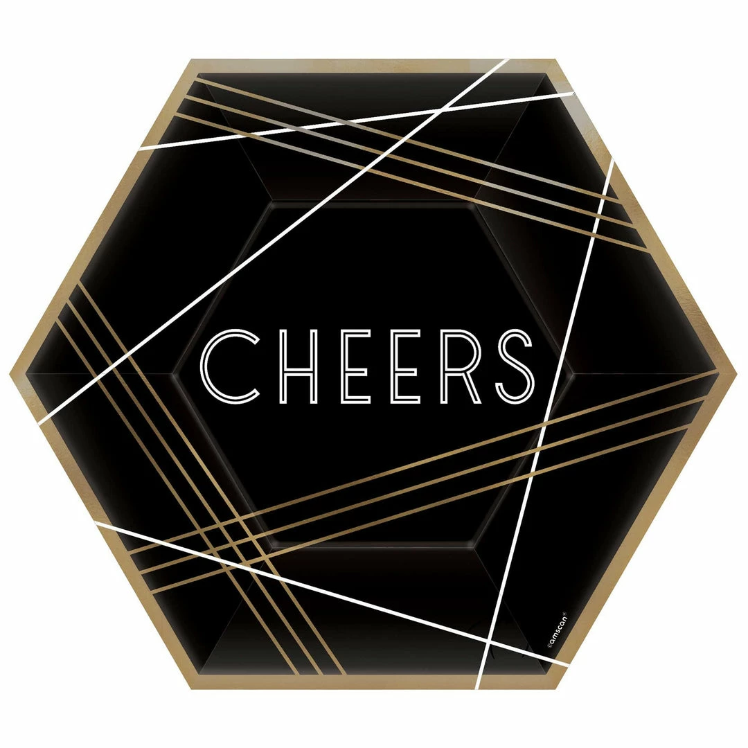Be the first to review “Balloon Agencies Black & Gold Cheers Hexagon Paper Plates” Cancel reply