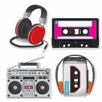 Cassette Player & Headphones Cutouts Assorted Designs Printed Both Sides – Sizes from 30cm – 36cm Pack of 4ÂÂ