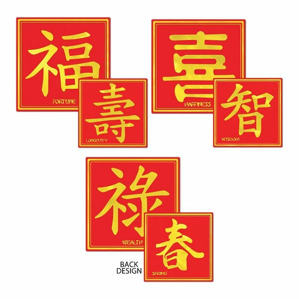 Asian Cutouts Printed Both Sides Foil 27cm Cardboard Pack of 3