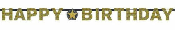 Balloon Agencies Birthday Banners & Bunting Happy Birthday Flag Banner Black Gold & Silver