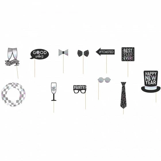 DISCO BALL DROP HAPPY NEW YEAR JUMBO PHOTO PROPS KIT FOIL HOT STAMPED