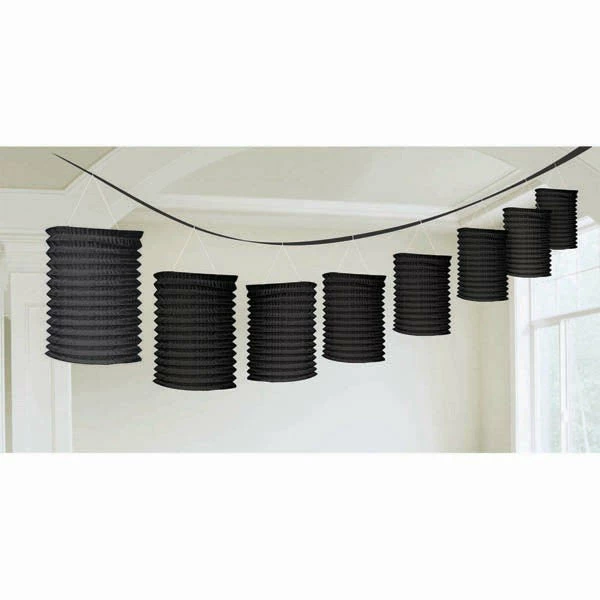 Lantern Garland Black Contains 8 x paper lanterns (10cm x 16cm) on a garland (3.65m) Each