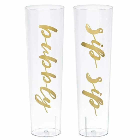 CHAMPAGNE STEMLESS WINE GLASSES GOLD HOT STAMPED ON CLEAR PLASTIC