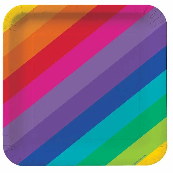 Rainbow Dinner Plates Square Paper (23cm) Pack of 8