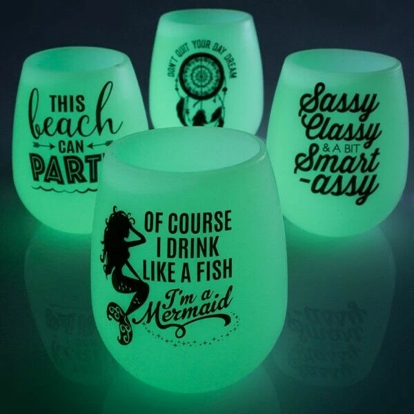 - Glow-in-the-dark stemless wine cups made from 100% silicone