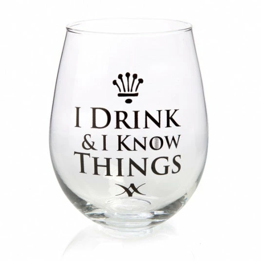 - Hand-blown stemless wine glass (Tyrion would approve)