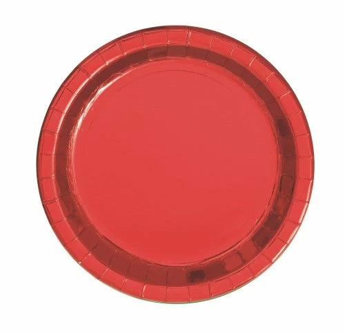 Red FOIL 8 X 18cm (7″) ROUND PAPER PLATES