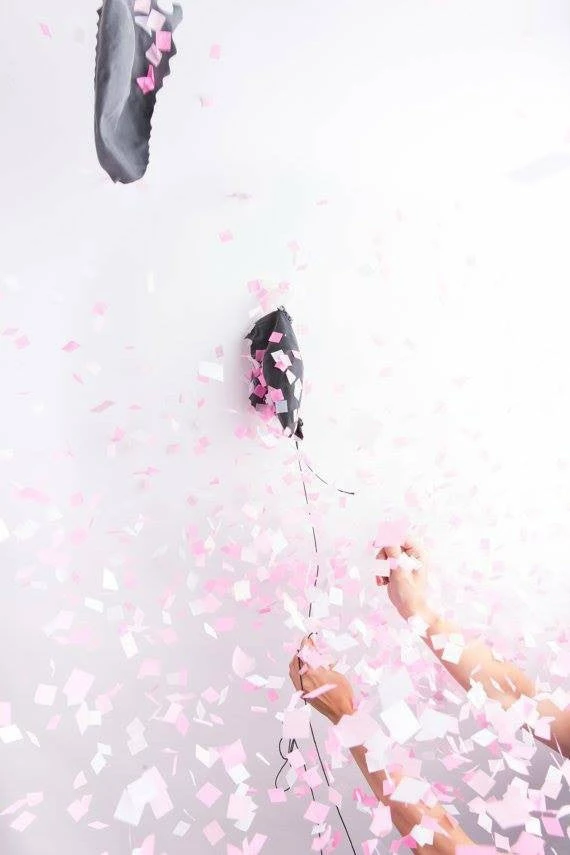 These giant 36″ (90cm) balloons give your gender reveal party a little flair and your big reveal extra impact. When the balloon pops, beautiful pink or blue confetti mix flutters down, showering you and your guests with the sweet surprise.