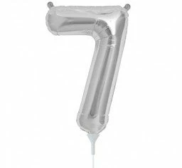 Number 7 Silver Megaloon 41cm Foil Balloon (Self Sealing Balloon – Air Filled Only) Complete with Straw to Self Inflate – Packaged Each