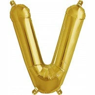 Letter V Gold Megaloon 41cm Foil Balloon (Self Sealing Balloon – Air Filled Only) Complete with Straw to Self Inflate – Packaged Each