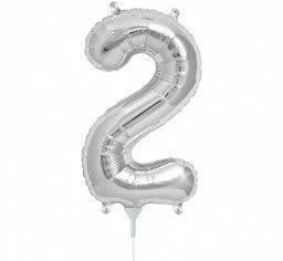 Number 2 Silver Megaloon 41cm Foil Balloon (Self Sealing Balloon – Air Filled Only) Complete with Straw to Self Inflate – Packaged Each