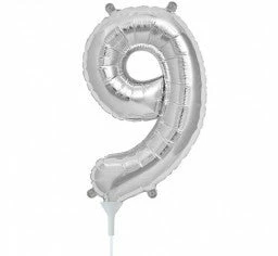 Number 9 Silver Megaloon 41cm Foil Balloon (Self Sealing Balloon – Air Filled Only) Complete with Straw to Self Inflate – Packaged Each