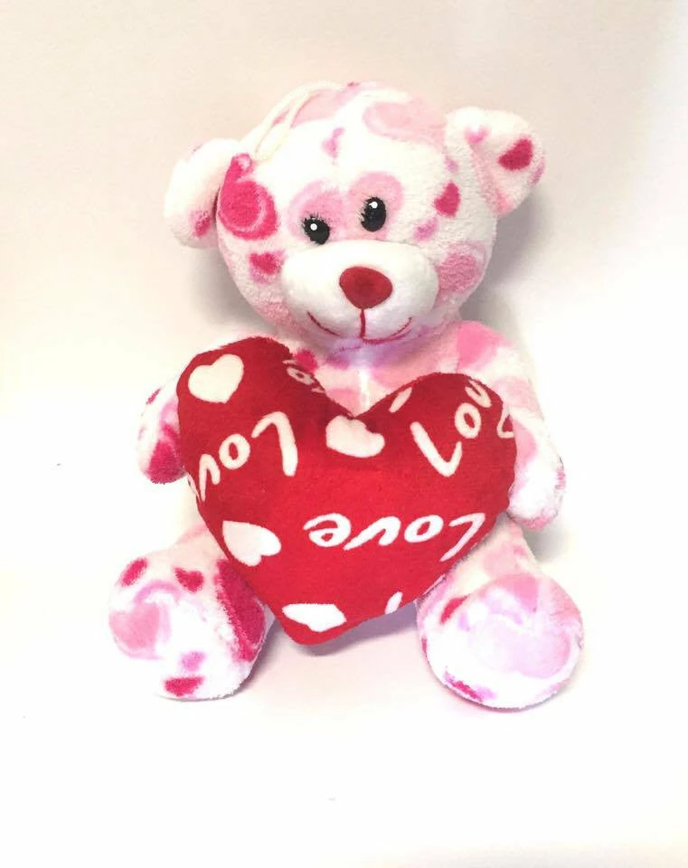 Soft Toy 22cm ‘Karren’ Bear with Heart, Hearts printed all over bear