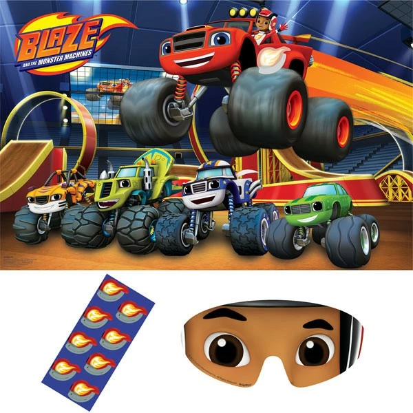 Blaze & The Monster Machines Party Game 1 x Plastic Poster, 8 x Stickers & 1 x Paper Blindfold Each