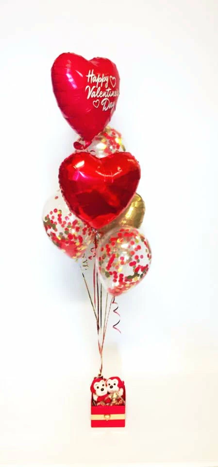 Valentines Foil balloon, love heart foil balloons, Confetti Balloons, Cuddling monkeys & chocolates.