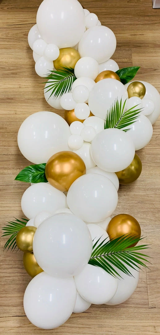2m organic Balloon Garland chrome silver & Gold, matte Black & white with greenery.