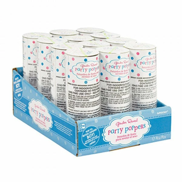 Gender Reveal Confetti Popper Boy Reveal 10cm Spring Loaded & Paper Pink Confetti Box of 12